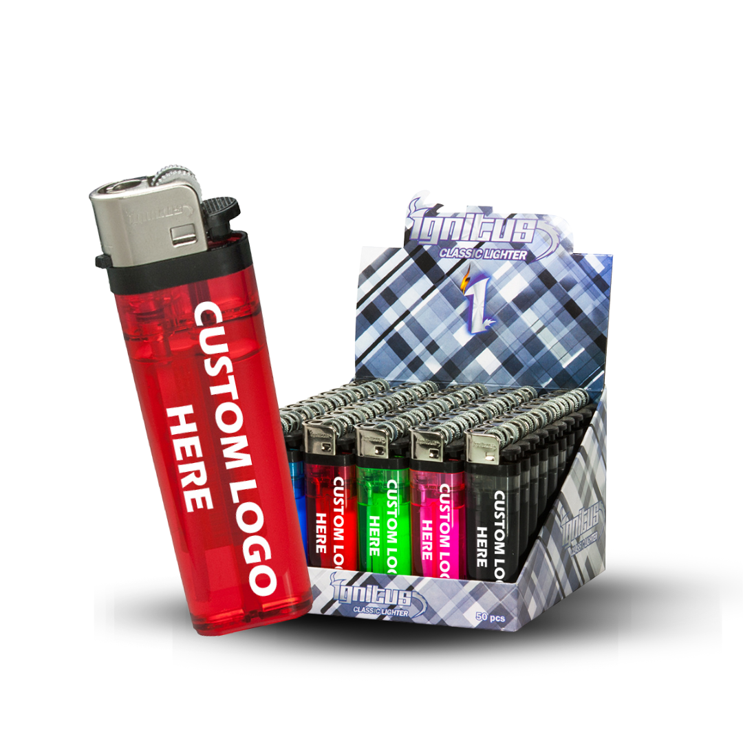 Ignitus Logo Printing Lighters offer custom printing on our Classic Flint and Torch Lighters, turning everyday ignition into a practical branding tool. Designed for promotions, events, and retail partnerships, these custom lighters keep your brand in hand longer than traditional print materials.